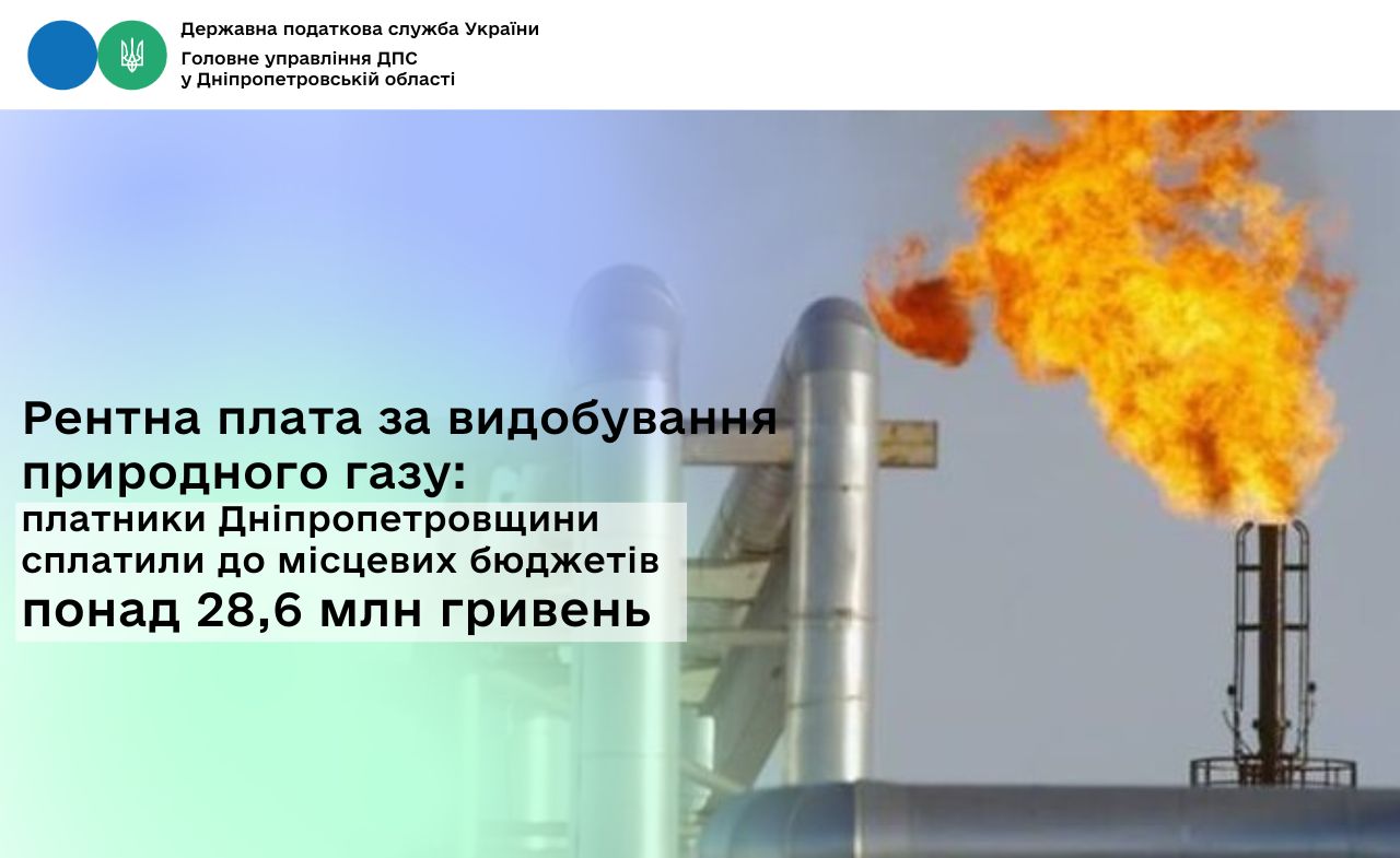 Упродовж січня – грудня 2025 року від платників рентної плати за видобування природного газу до місцевих бюджетів Дніпропетровської області надійшло понад 28,6 млн гривень.