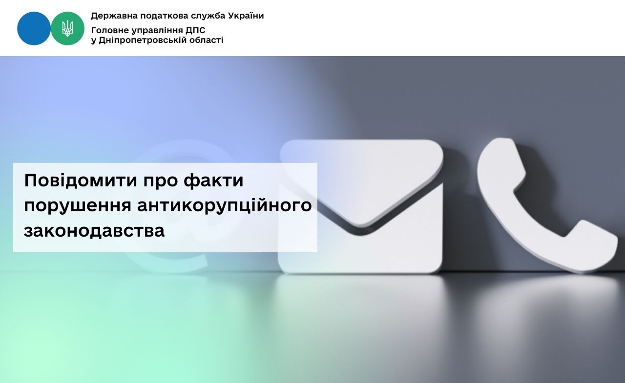 Повідомити про факти порушення антикорупційного законодавства працівниками Головного управління ДПС у Дніпропетровській області можна такими способами: