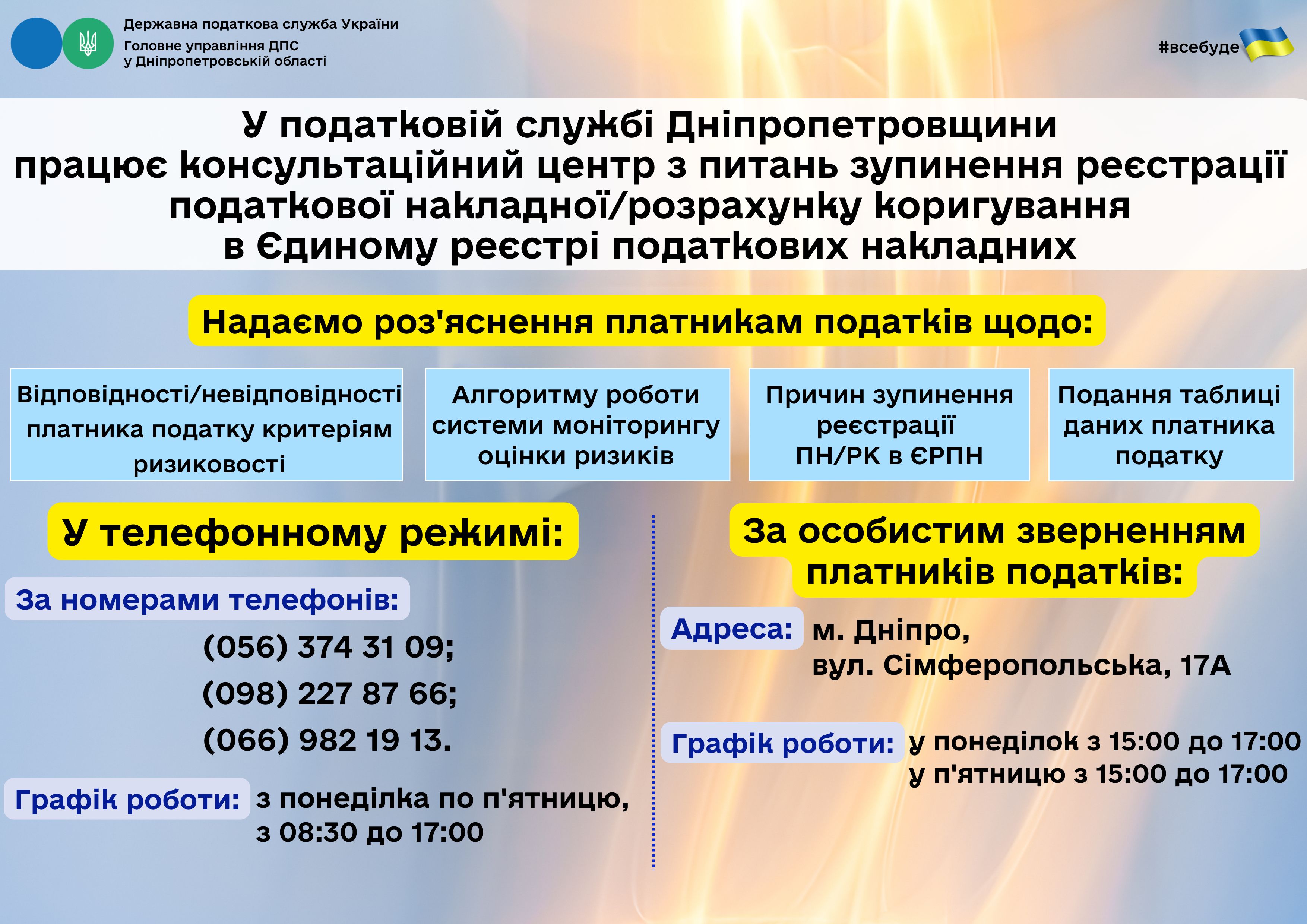 Консультаційний центр з питань зупинення реєстрації податкової накладної/розрахунку коригування в Єдиному реєстрі податкових накладних