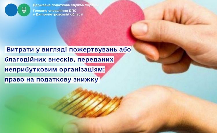 Відділ комунікацій з громадськістю управління інформаційної взаємодії Головного управління ДПС у Дніпропетровській області (територія обслуговування – Кам’янський район) нагадує, що п.п. 166.3.2 п. 166.3 ст. 166 Податкового кодексу України (далі – ПКУ), зокрема, визначено: платник податку на доходи фізичних осіб має право включити до податкової знижки у зменшення оподатковуваного доходу платника податку за наслідками звітного податкового року, нарахованого у вигляді заробітної плати, зменшеного з урахуванням положень п. 164.6 ст. 164 ПКУ, суму коштів або вартість майна, перерахованих (переданих) платником податку у вигляді пожертвувань або благодійних внесків неприбутковим організаціям, які на дату перерахування (передачі) таких коштів та майна відповідали умовам, визначеним п. 133.4 ст. 133 ПКУ, у розмірі, що не перевищує 4 відс. суми його загального оподатковуваного доходу такого звітного року.
