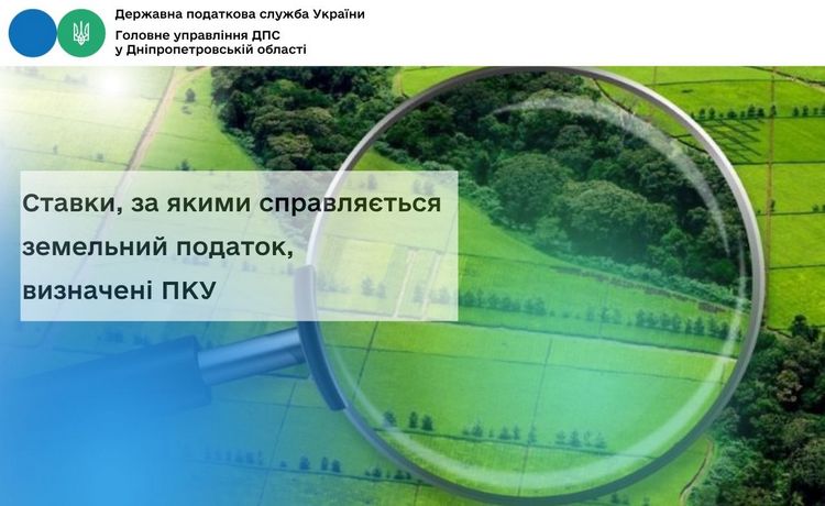Відділ комунікацій з громадськістю управління інформаційної взаємодії Головного управління ДПС у Дніпропетровській області (територія обслуговування – Кам’янський район) нагадує, що Ставка податку за земельні ділянки, у тому числі право на які фізичні особи мають як власники земельних часток (паїв), нормативну грошову оцінку яких проведено, встановлюється у розмірі не більше 3 відс. від їх нормативної грошової оцінки, для земель загального користування – не більше 1 відс. від їх нормативної грошової оцінки, для сільськогосподарських угідь – не менше 0,3 відс. та не більше 1 відс. від їх нормативної грошової оцінки, а для лісових земель – не більше 0,1 відс. від їх нормативної грошової оцінки (п. 274.1 ст. 274 Податкового кодексу України (далі – ПКУ)).