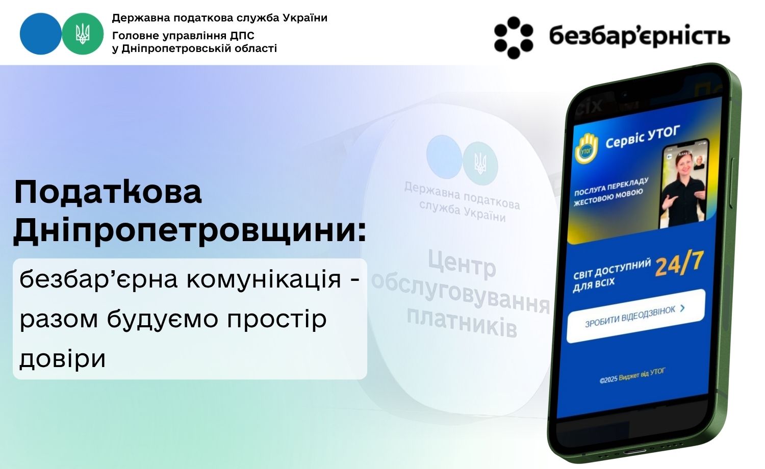 Така інтеграція стала можливою завдяки укладеному у рамках співпраці договору між ГУ ДПС та Дніпропетровською обласною організацією УТОГ. Відповідно до угоди особам з інвалідністю зі слуху надаються послуги перекладу на українську жестову мову та з української жестової мови шляхом використання постійного абонентського доступу до Web-системи відеозв’язку з перекладачами жестової мови «Сервіс УТОГ – 24/7».