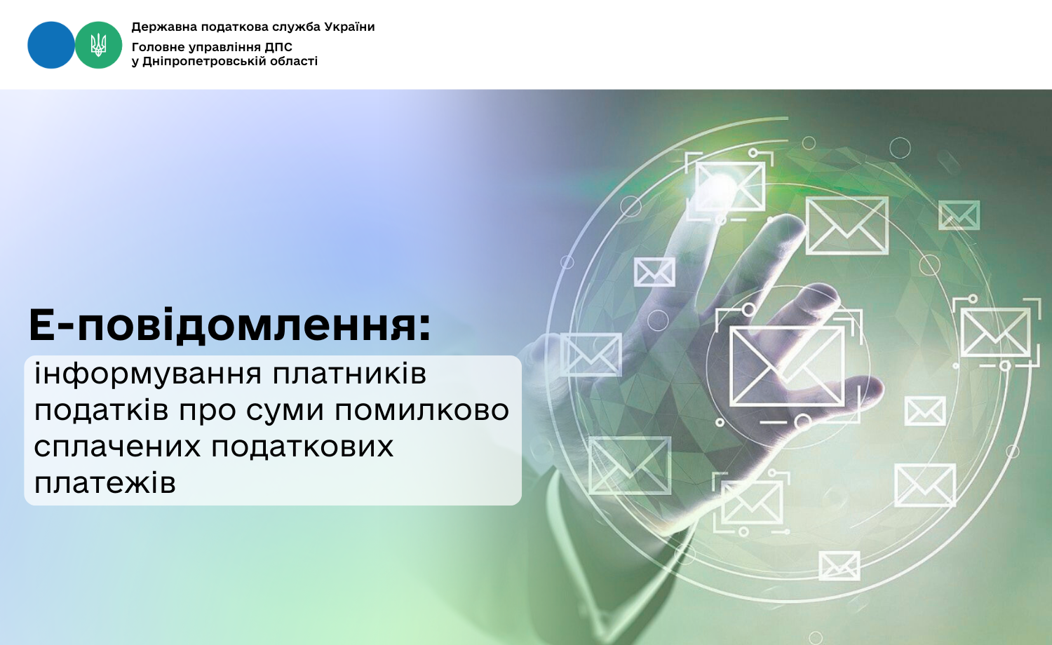 Відділ комунікацій з громадськістю управління інформаційної взаємодії Головного управління ДПС у Дніпропетровській області (територія обслуговування - місто Дніпро) нагадує, що з метою підвищення рівня інформування платників податків про суми помилково сплачених податкових платежів та єдиного внеску працює сервіс «Е-повідомлення».