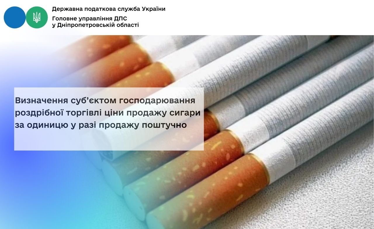 Відділ комунікацій з громадськістю управління інформаційної взаємодії Головного управління ДПС у Дніпропетровській області (територія обслуговування - місто Дніпро) звертає увагу, що Відповідно до частини першої ст. 71 Закону України від 18 червня 2024 року № 3817-IX «Про державне регулювання виробництва і обігу спирту етилового, спиртових дистилятів, біоетанолу, алкогольних напоїв, тютюнових виробів, тютюнової сировини, рідин, що використовуються в електронних сигаретах, та пального» (зі змінами та доповненнями) (далі – Закон № 3817) забороняється продаж, тютюнових виробів поштучно крім сигар.