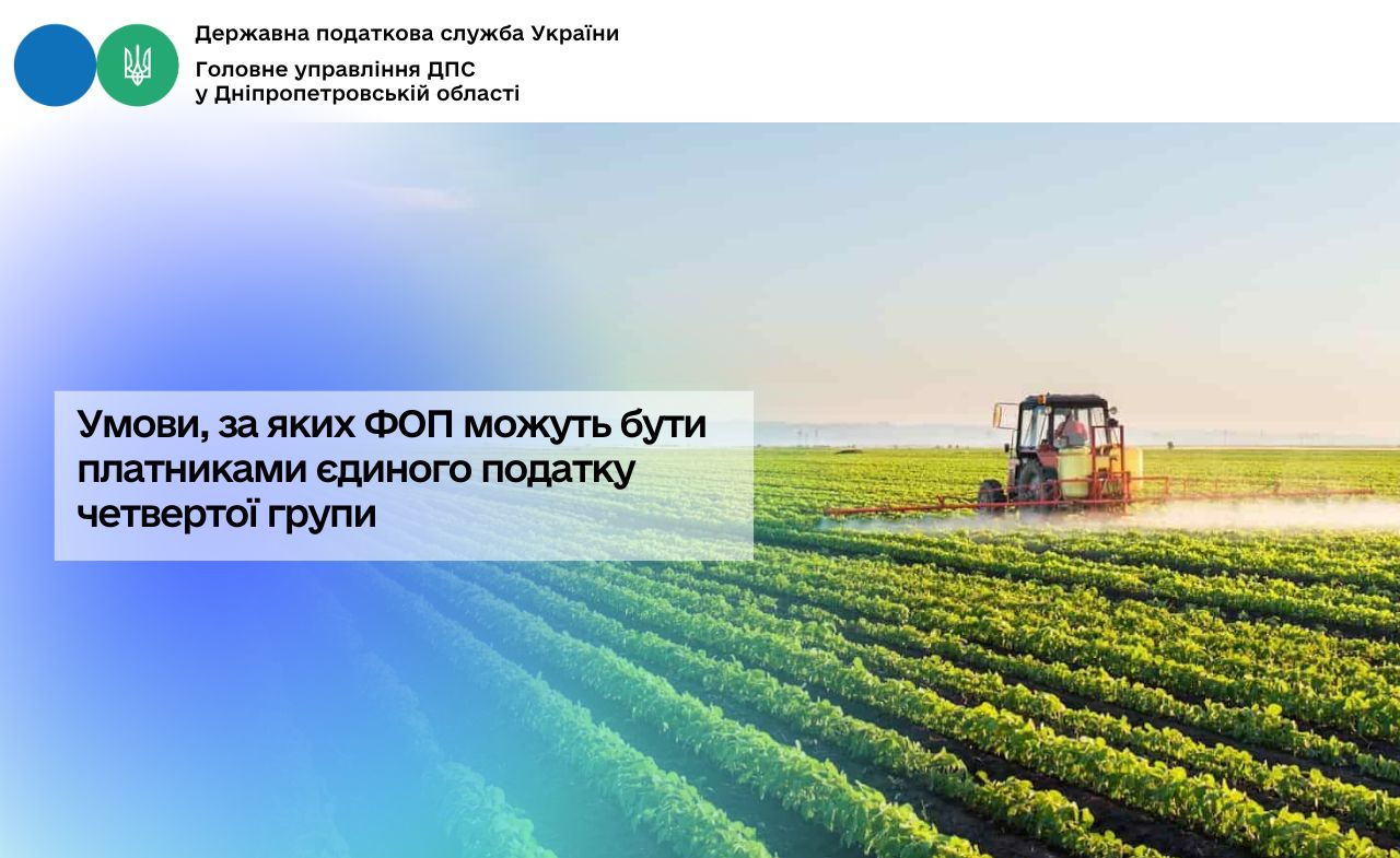 Підпунктом «б» п.п. 4 п. 291.4 ст. 291 Податкового кодексу України (далі – ПКУ) встановлено, що до платників єдиного податку четвертої групи, належать фізичні особи – підприємці, які провадять діяльність виключно в межах фермерського господарства, зареєстрованого відповідно до Закону України від 19 червня 2003 року № 973-IV «Про фермерське господарство» (зі змінами та доповненнями), за умови виконання сукупності таких вимог: