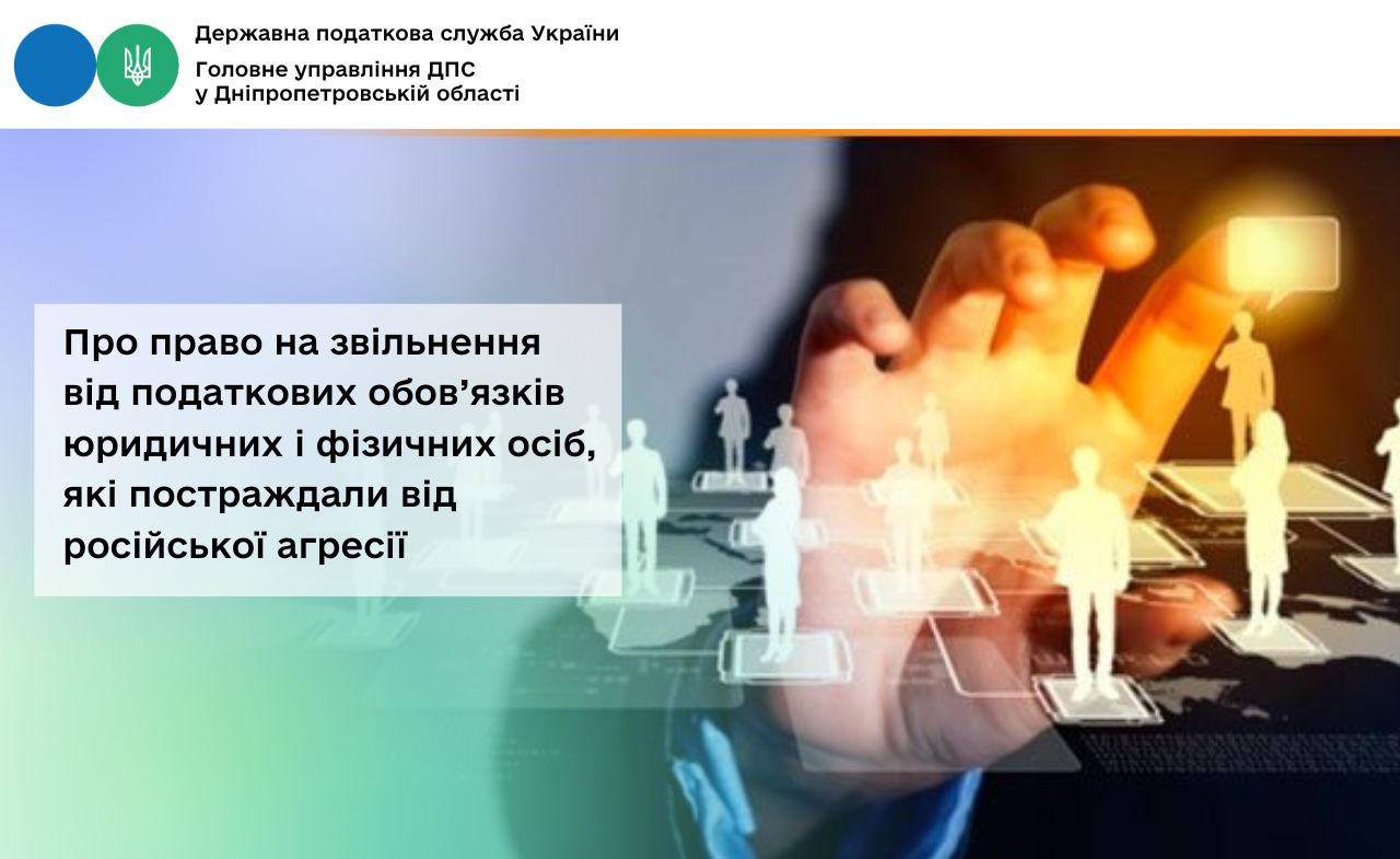 Відділ комунікацій з громадськістю управління інформаційної взаємодії Головного управління ДПС у Дніпропетровській області (територія обслуговування - місто Дніпро) нагадує, що платники податків із прифронтових територій, які постраждали внаслідок бойових дій, можуть отримати тимчасове звільнення від виконання податкових обов’язків.