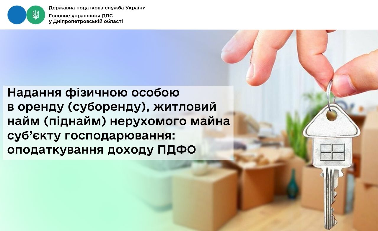 Головне управління ДПС у Дніпропетровській області нагадує, що згідно з п.п. 164.2.5 п. 164.2 ст. 164 Податкового кодексу України (далі – ПКУ) до загального місячного (річного) оподатковуваного доходу платника податку на доходи фізичних осіб (податок, ПДФО) включаються, зокрема, дохід від надання майна в лізинг, оренду або суборенду (строкове володіння та/або користування), визначений у порядку, встановленому п. 170.1 ст. 170 ПКУ.