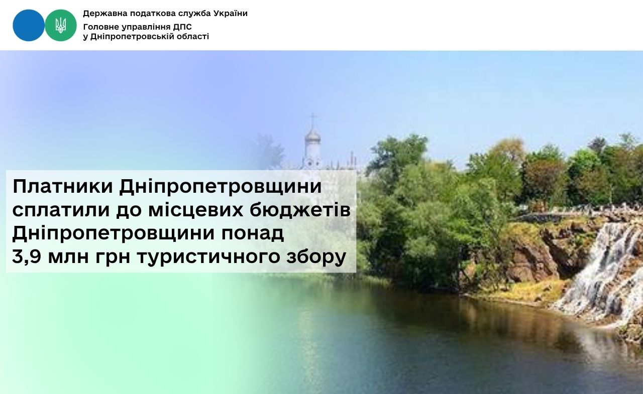 З початку поточного року платники туристичного збору поповнили місцеві бюджети Дніпропетровщини на понад 3 976,8 тис. гривень. У порівнянні січнем – березнем 2025 року надходження зросли на 486,2 тис. грн, або на 13,9 відсотків.