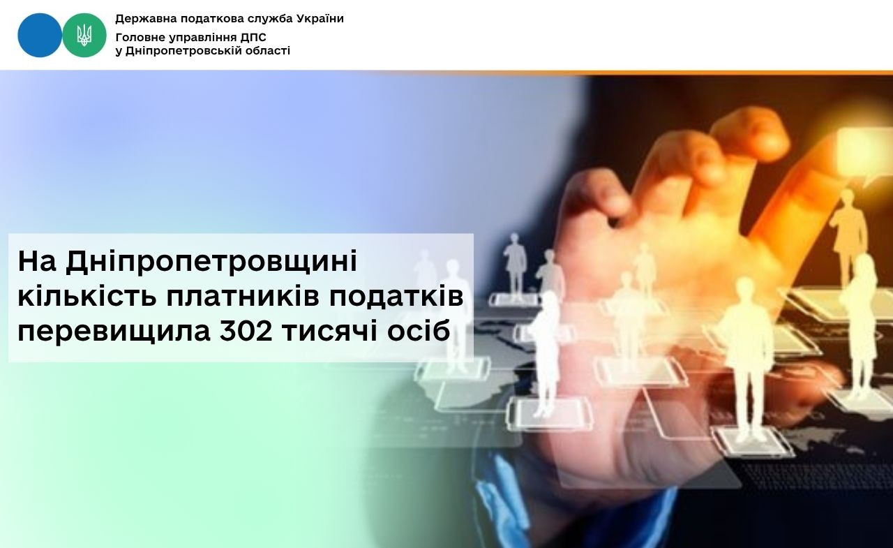 Станом на 01.04.2026 на податковому обліку в Головному управлінні ДПС у Дніпропетровській області перебувало 302 202 юридичні і самозайняті особи (ФОПів, адвокатів та нотаріусів). Порівняно з 2025 роком кількість платників податків зросла на 10 027 осіб (станом на 01.04.2025 – 292 175 осіб).