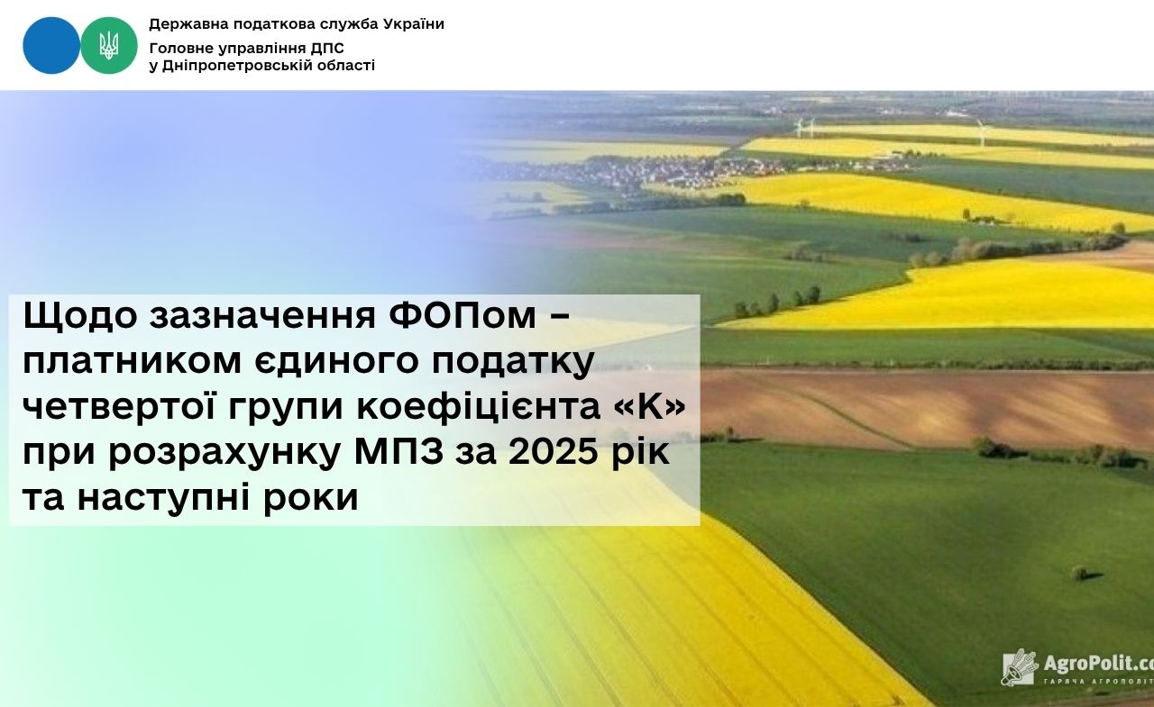 Головне управління ДПС у Дніпропетровській області звертає увагу, що відповідно до п.п. 14.1.114 прим. 2 п. 14.1 ст. 14 Податкового кодексу України (далі – ПКУ) мінімальне податкове зобов’язання (МПЗ) – мінімальна величина податкового зобов’язання із сплати податків, зборів, платежів, контроль за справлянням яких покладено на контролюючі органи, пов’язаних з виробництвом та реалізацією власної сільськогосподарської продукції та/або з власністю та/або користуванням (орендою, суборендою, емфітевзисом, постійним користуванням) земельними ділянками, віднесеними до сільськогосподарських угідь, розрахована відповідно до ПКУ. Сума МПЗ, визначених щодо кожної із земельних ділянок, право користування якими належить одній, зокрема, фізичній особі, у тому числі фізичній особі – підприємцю, є загальним МПЗ.