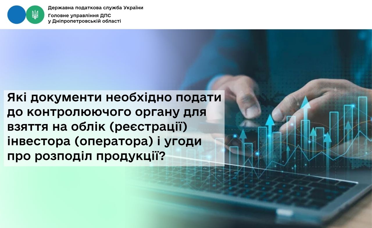 Відповідно до п. 4.5 розд. IV Порядку обліку платників податків і зборів, затвердженого наказом Міністерства фінансів України від 09.12.2011 № 1588 (із змінами та доповненнями) (далі – Порядок № 1588) для взяття на облік (реєстрації) інвестора (оператора) і угоди про розподіл продукції як платника податків інвестор (оператор) зобов’язаний протягом 10 календарних днів після реєстрації угоди або після набрання нею чинності подати до контролюючого органу за своїм місцезнаходженням (основним місцем обліку) такі документи: