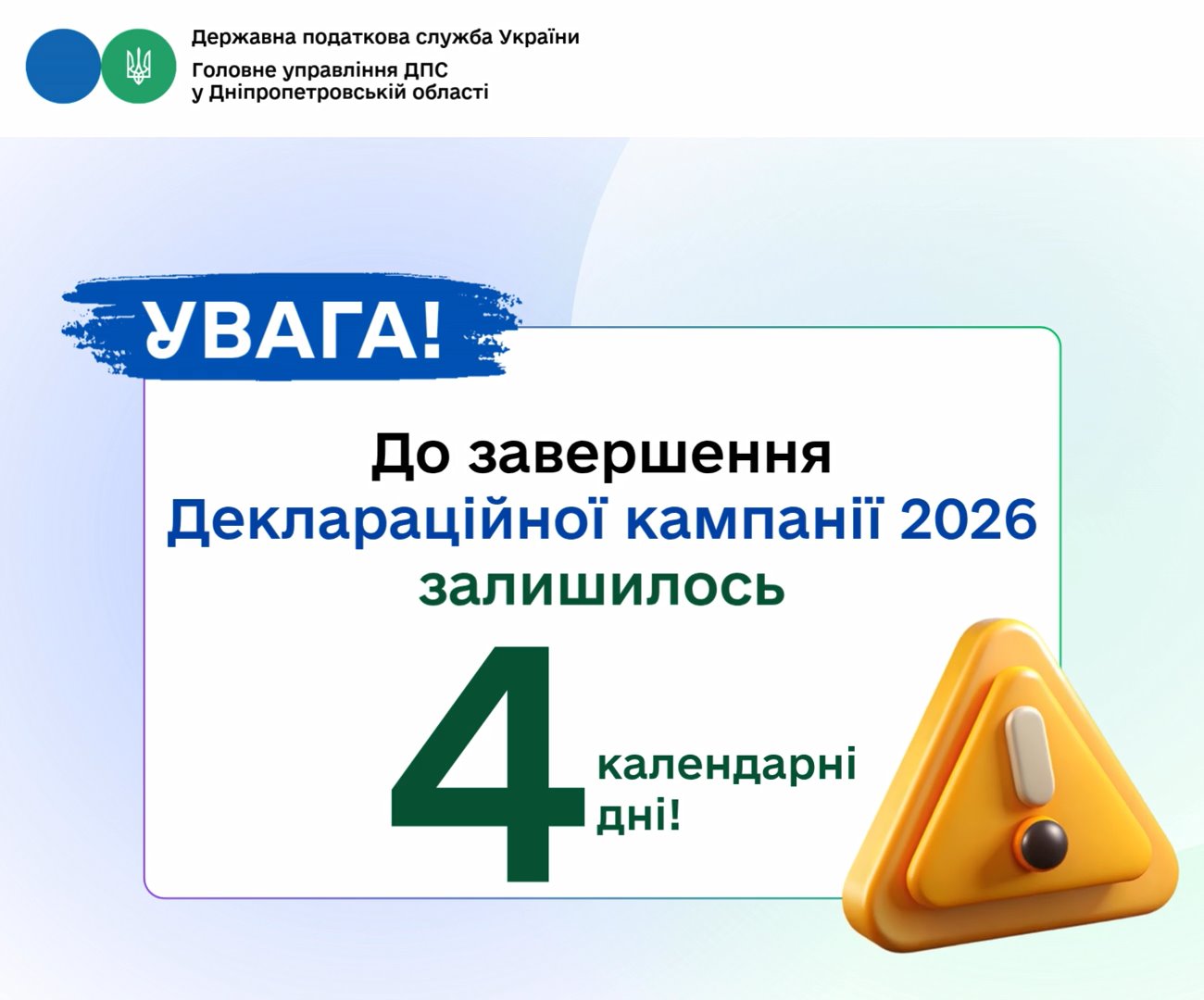 До завершення Деклараційної кампанії 2026 залишилось 4 календарні дні!