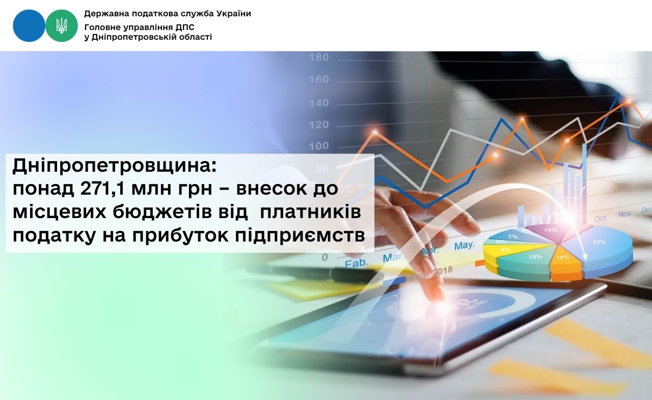 У першому кварталі 2026 року до місцевих бюджетів Дніпропетровщини платники податку на прибуток підприємств сплатили понад 271,1 млн гривень. У порівнянні з січнем – березнем 2025 року надходження зросли майже на 12,4 млн грн, темп росту –104,8 відсотків.