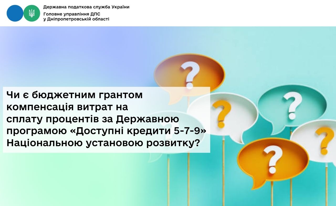 Компенсація витрат на сплату процентів за Державною програмою «Доступні кредити 5-7-9» Національною установою розвитку не є бюджетним грантом.