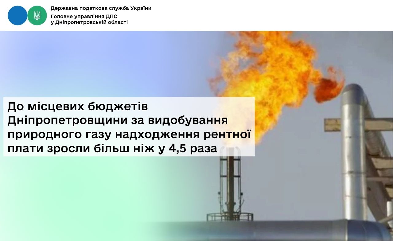 З початку поточного року платниками рентної плати за видобування природного газу поповнено місцеві бюджети Дніпропетровської області майже на 9,1 млн грн, що майже на 7,1 млн грн більше ніж у січні – березні 2025 року, темп росту – 452,9 відсотків.