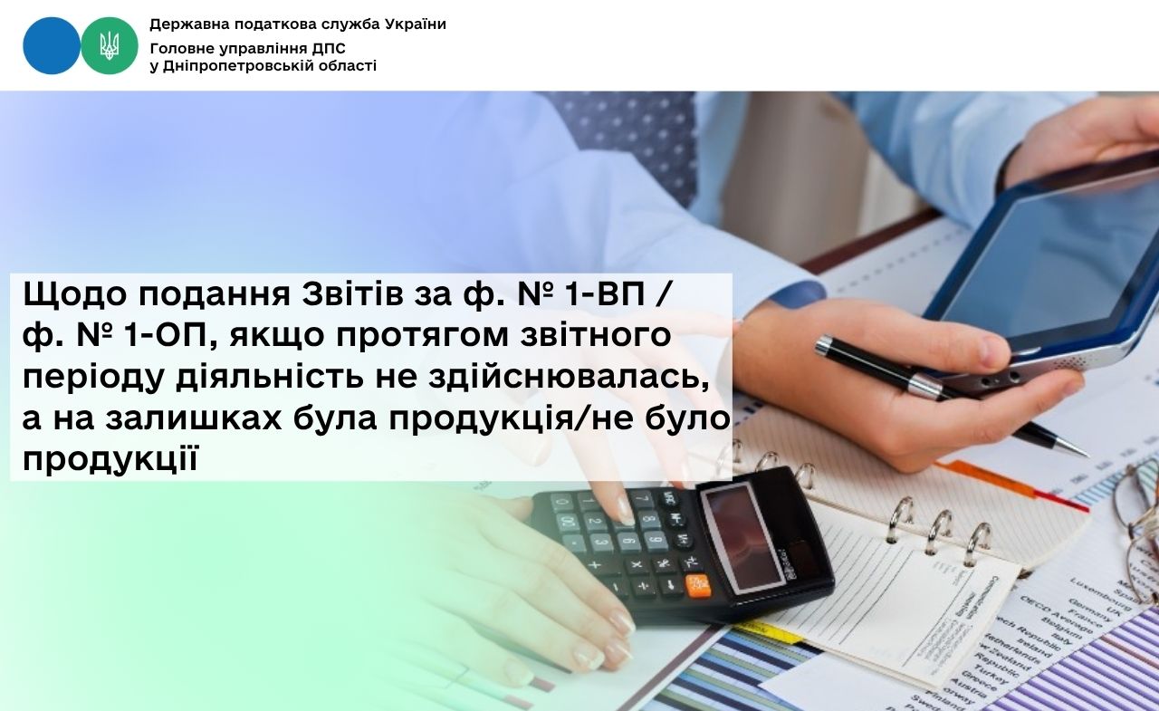 Головне управління ДПС у Дніпропетровській області нагадує, що форми звітності № 1-ВП (місячна, річна) «Звіт про залишки та обсяги виробництва та/або обігу (в тому числі ввезення на митну територію України, вивезення за межі митної території України) спирту етилового, спиртових дистилятів, біоетанолу, алкогольних напоїв, тютюнових виробів, рідин, що використовуються в електронних сигаретах, про залишки та обсяги придбання і використання тютюнової сировини, про обсяг (вагу) придбаної неферментованої тютюнової сировини, обсяг (вагу) виробленої ферментованої тютюнової сировини, обсяг (вагу) реалізованої ферментованої тютюнової сировини, обсяг (вагу) залишків неферментованої та ферментованої тютюнової сировини на кінець звітного періоду, про залишки та обсяг вирощування тютюну і реалізації тютюнової сировини, посівну площу» (далі – Звіт № 1-ВП), звітності № 1-ОП (місячна) «Звіт про залишки та обсяги обігу (в тому числі ввезення на митну територію України, вивезення за межі митної території України) спирту етилового, спиртових дистилятів, біоетанолу, алкогольних напоїв, тютюнових виробів, тютюнової сировини (у тому числі ферментованої тютюнової сировини), рідин, що використовуються в електронних сигаретах» (далі – Звіт № 1-ОП) та порядок їх заповнення (далі – Порядок) затверджено наказом Міністерства фінансів України від 22.12.2025 № 641.