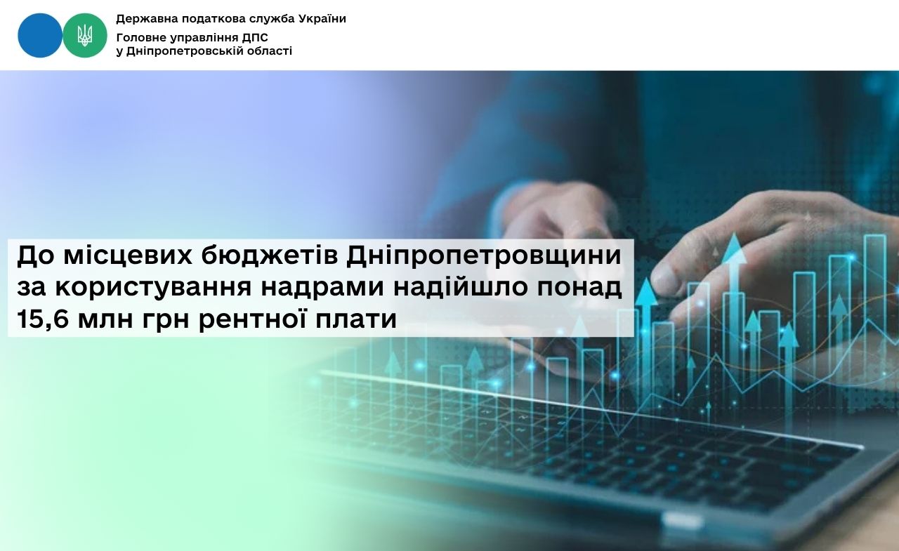 Упродовж січня – березня 2026 року платники рентної плати користування надрами сплатили до місцевих бюджетів Дніпропетровської області понад 15,6 млн грн, що на понад 5,7 млн грн, або на 58,6 відс. більше ніж відповідному періоді минулого року.