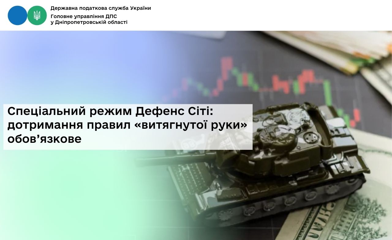 Головне управління ДПС у Дніпропетровській області звертає увагу, що запровадження спеціального правового режиму Дефенс Сіті не скасовує вимог Податкового кодексу України щодо дотримання принципу «витягнутої руки» при здійсненні контрольованих операцій та звітування з трансфертного ціноутворення.