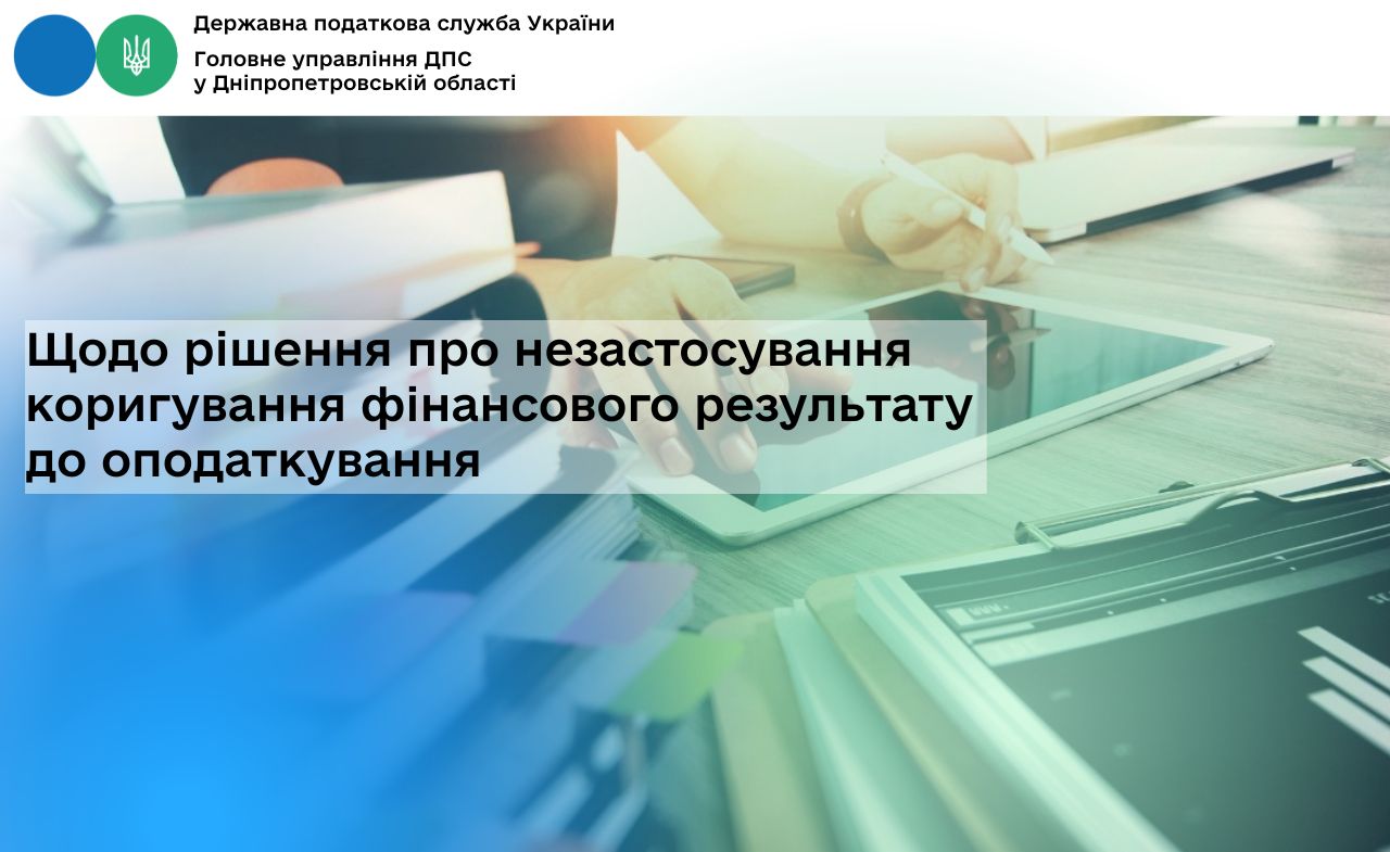 Щодо рішення про незастосування коригування фінансового результату до оподаткування