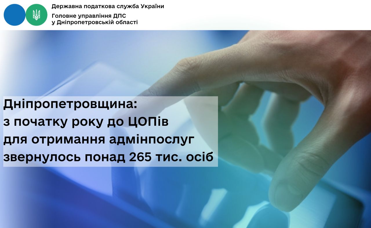 Дніпропетровщина: з початку року до ЦОПів для отримання адмінпослуг звернулось понад 265 тис. осіб