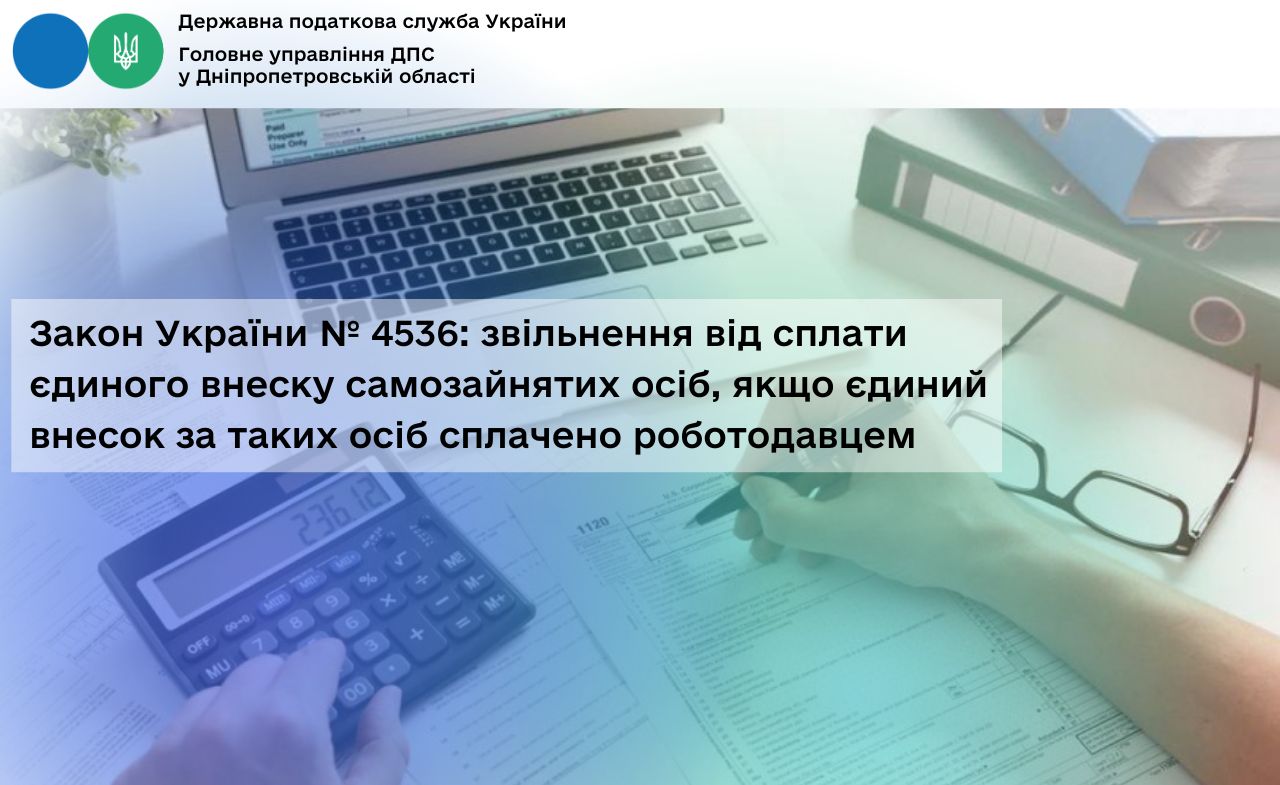 Головне управління ДПС у Дніпропетровській області нагадує, що відповідно до п. 3 частини другої розд. ІІ «Прикінцеві та перехідні положення» Закону України від 16 липня 2025 року № 4536-ІХ «Про внесення змін до Податкового кодексу України та інших законодавчих актів України у зв’язку з прийняттям Закону України «Про інтегроване запобігання та контроль промислового забруднення» та з метою удосконалення окремих положень податкового законодавство» частину шосту ст. 4 Закону України від 08 липня 2010 року № 2464-VI «Про збір та облік єдиного внеску на загальнообов’язкове державне соціальне страхування» (зі змінами та доповненнями) (далі – Закон № 2464) викладено у новій редакції, відповідно до якої особи, зазначені у пунктах 4 і 5 частини першої ст. 4 Закону № 2464, звільняються від сплати за себе єдиного внеску за місяці звітного періоду, за які роботодавцем, у тому числі резидентом Дія Сіті, сплачено страховий внесок за таких осіб у розмірі не менше мінімального страхового внеску. Такі особи можуть бути платниками єдиного внеску за умови самостійного визначення ними бази нарахування за місяці звітного періоду, за які роботодавцем, у тому числі резидентом Дія Сіті, сплачено страховий внесок за таких осіб у розмірі менше мінімального страхового внеску. Самостійно визначена такими особами база нарахування не може перевищувати максимальну величину бази нарахування єдиного внеску, встановлену Законом № 2464. При цьому сума єдиного внеску не може бути меншою за розмір мінімального страхового внеску.