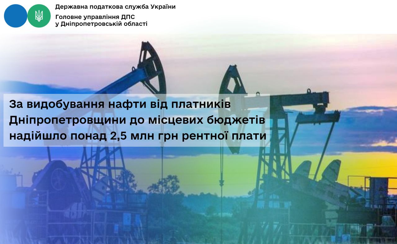 За видобування нафти від платників Дніпропетровщини до місцевих бюджетів надійшло понад 2,5 млн грн рентної плати