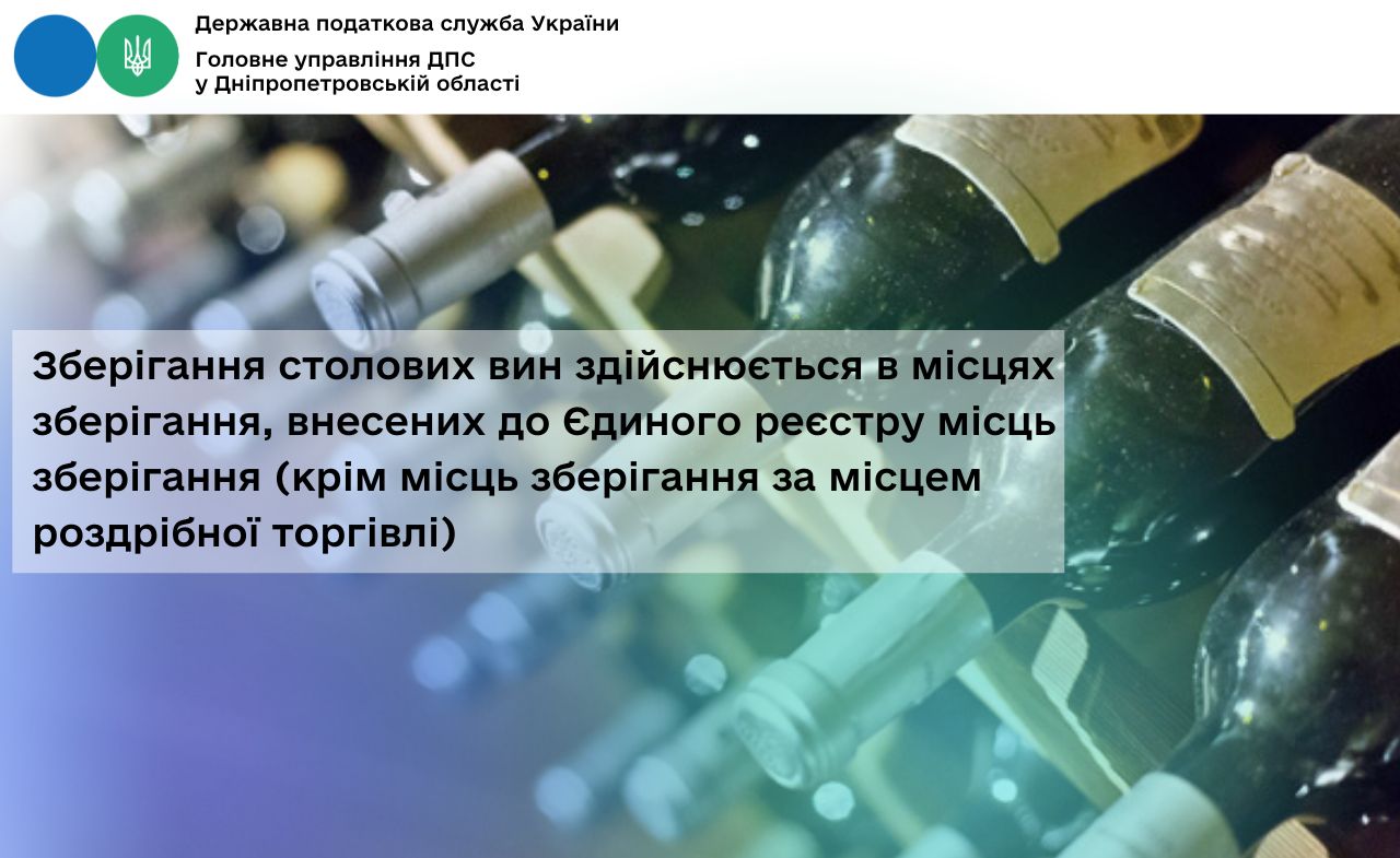 Зберігання столових вин здійснюється в місцях зберігання, внесених до Єдиного реєстру місць зберігання (крім місць зберігання за місцем роздрібної торгівлі)