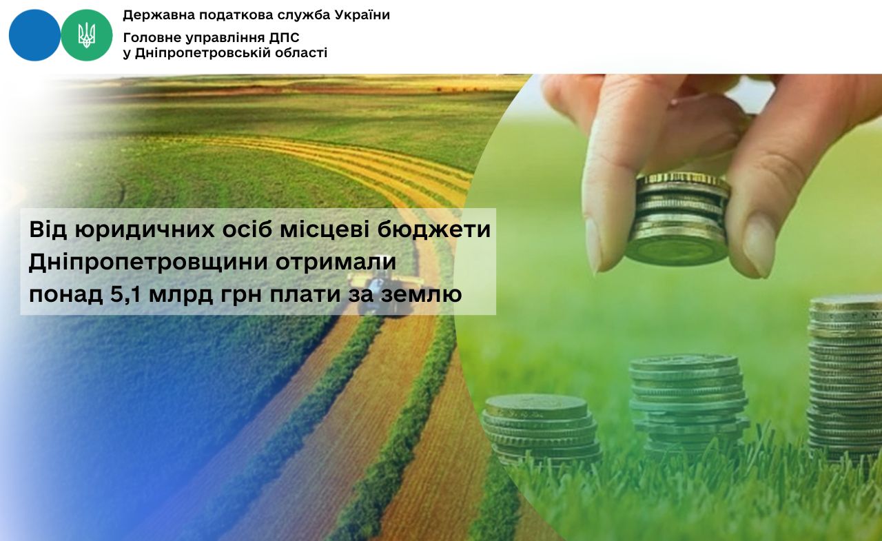 Від юридичних осіб місцеві бюджети Дніпропетровщини отримали понад 5,1 млрд грн плати за землю