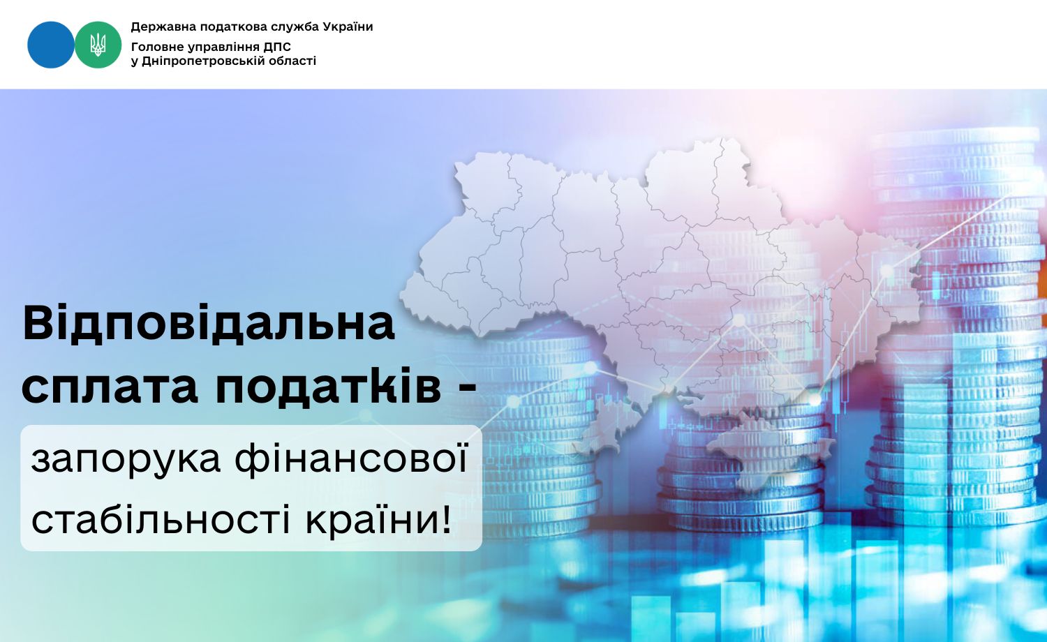 Головне управління ДПС у Дніпропетровській області повідомляє, що сплата податків, зборів та платежів особливо під час сучасних викликів, це особистий внесок кожного у підтримку обороноздатності нашої держави.
