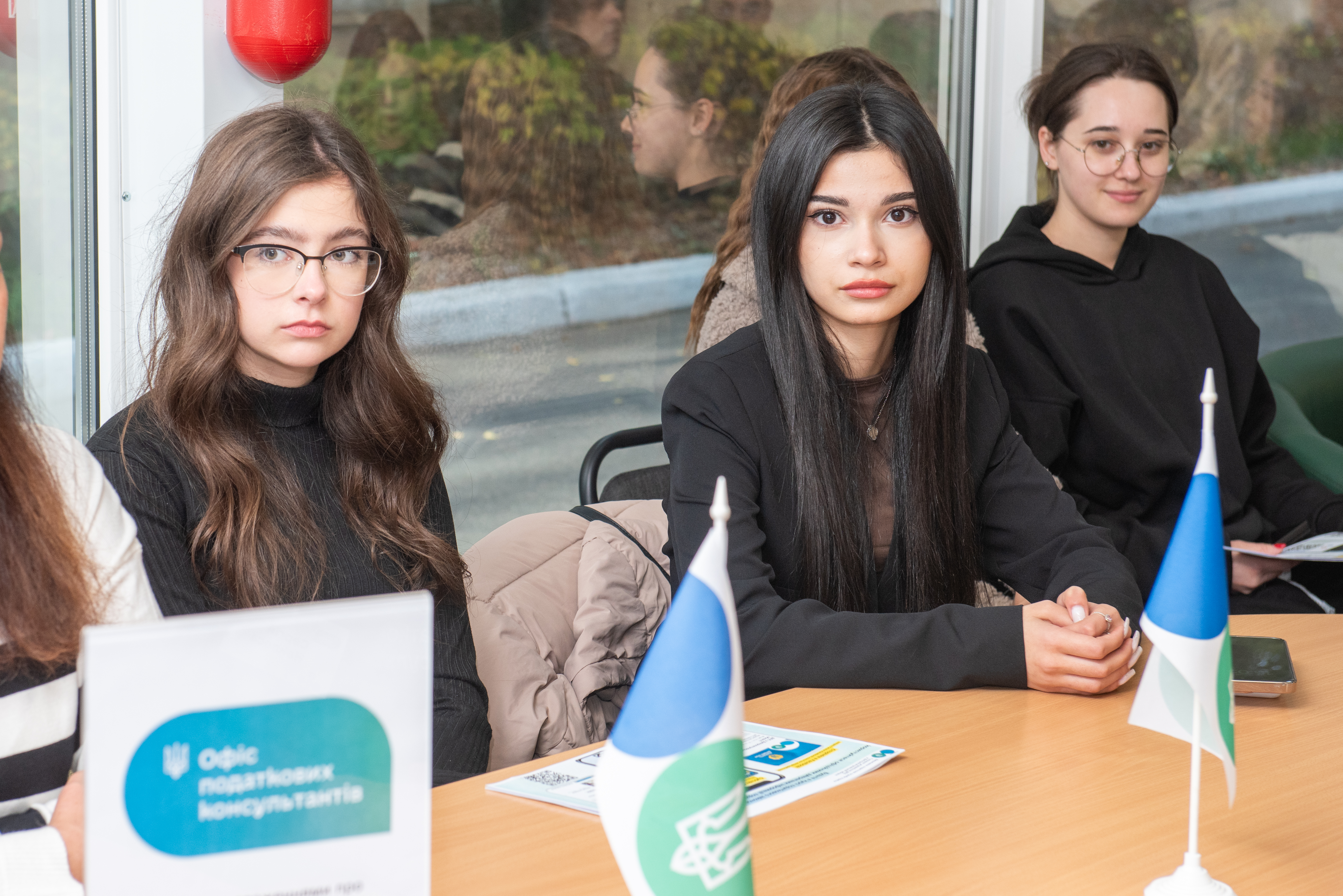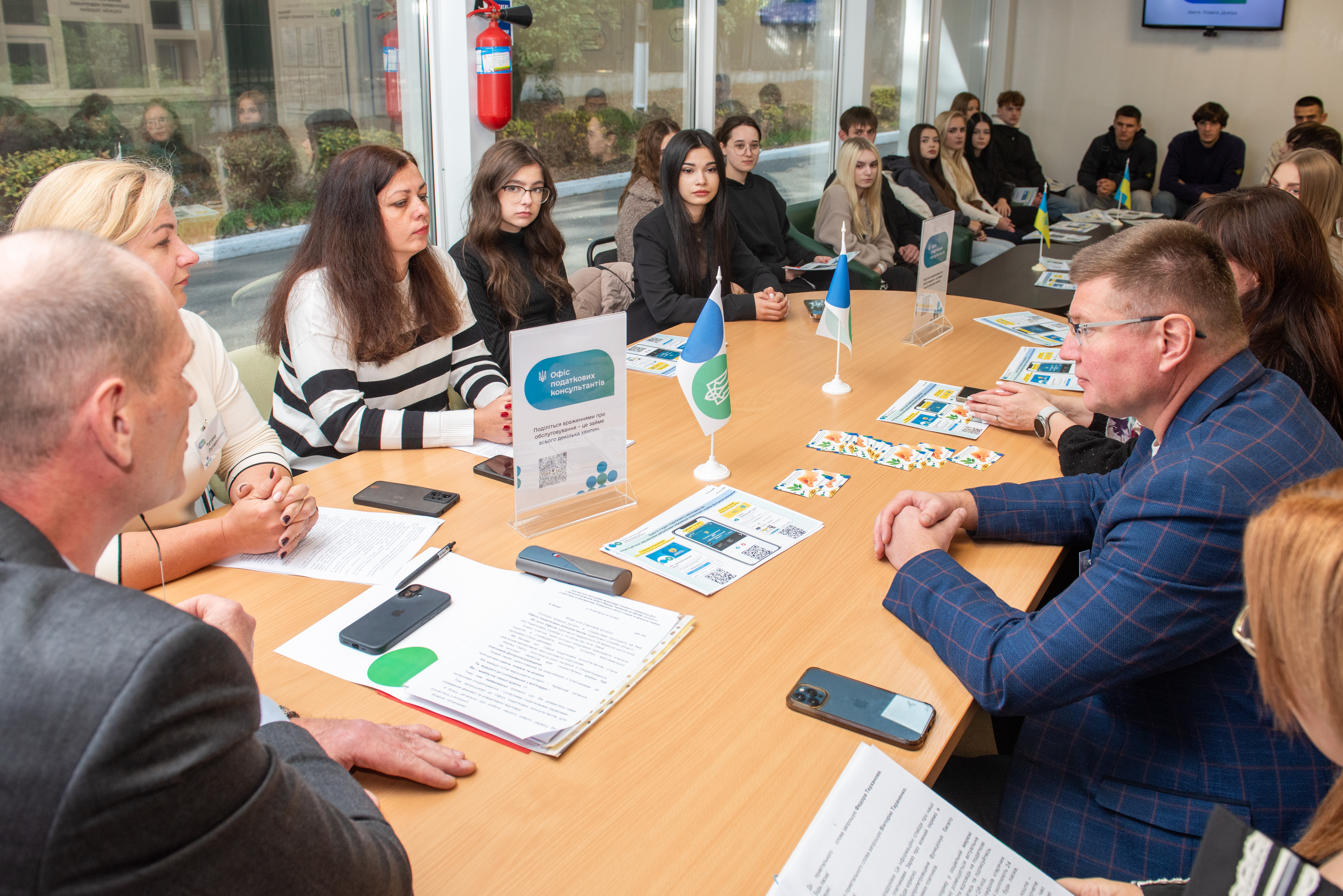 Студентам розповіли, що Офіс розпочав роботу місяць тому. Такі сучасні сервіси одночасно відкрито у 20 територіальних підрозділах ДПС України. Мета їх створення – забезпечення ефективного надання консультацій з питань податкового та іншого законодавства, контроль за дотриманням якого покладено на податкові органи.