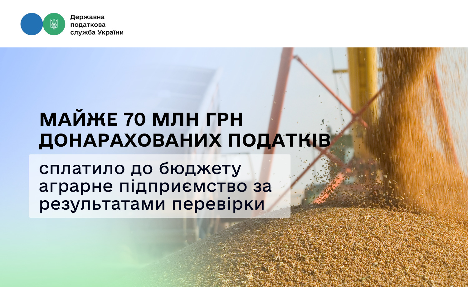 Майже 70 млн грн донарахованих податків сплатило до бюджету аграрне підприємство за результатами перевірки