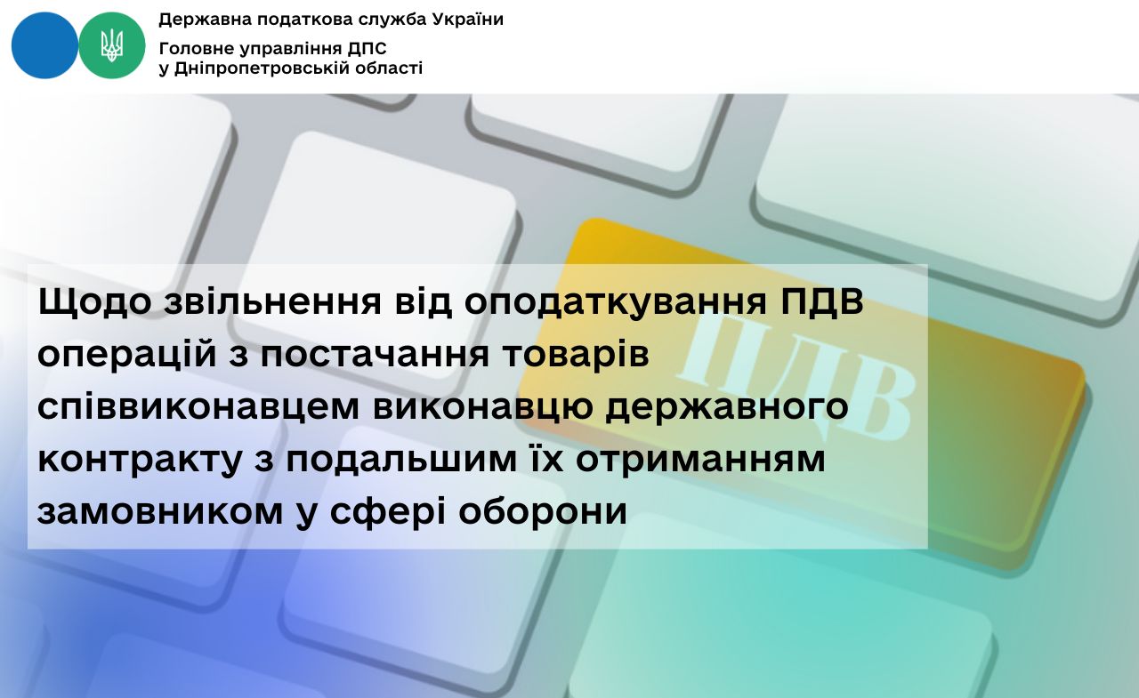 Щодо звільнення від оподаткування ПДВ операцій з постачання товарів співвиконавцем виконавцю державного контракту з подальшим їх отриманням замовником у сфері оборони