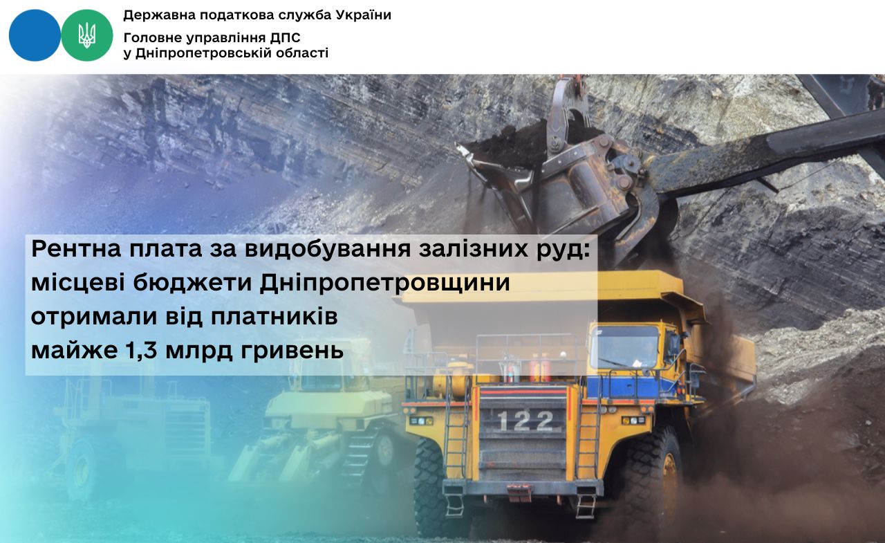 Протягом трьох кварталів цього року платники Дніпропетровщини за видобування залізних руд спрямували до місцевих бюджетів майже 1,3 млрд грн рентної плати.