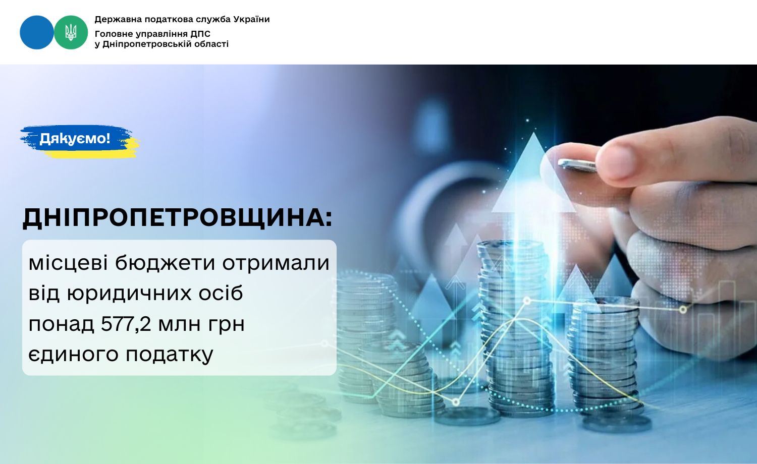 Дніпропетровщина: місцеві бюджети отримали від юридичних осіб понад 577,2 млн грн єдиного податку