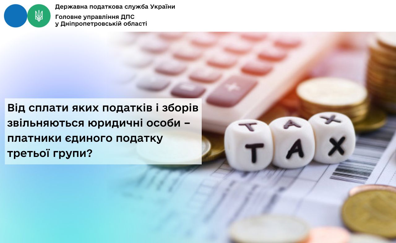 Головне управління ДПС у Дніпропетровській області нагадує, що відповідно до п. 297.1 ст. 297 Податкового кодексу України (далі – ПКУ) юридичні особи – платники єдиного податку третьої групи звільняються від обов’язку нарахування, сплати та подання податкової звітності з таких податків і зборів: