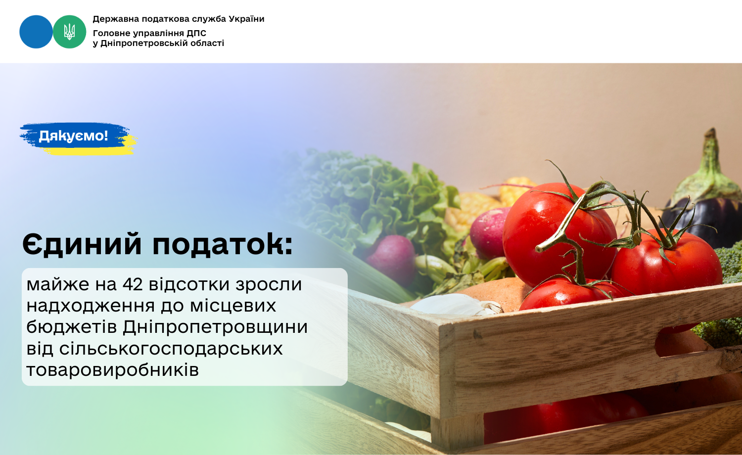 Протягом дев’яти місяців поточного року сільськогосподарські товаровиробники – платники єдиного податку поповнили місцеві бюджети Дніпропетровщини майже на 525,0 млн гривень. Надходження збільшились у порівнянні з минулорічним показником січня – вересня на понад 155,1 млн грн, темп росту – 141,9 відсотків. Про це поінформувала начальник Головного управління ДПС у Дніпропетровській області Теодозія Чернецька.