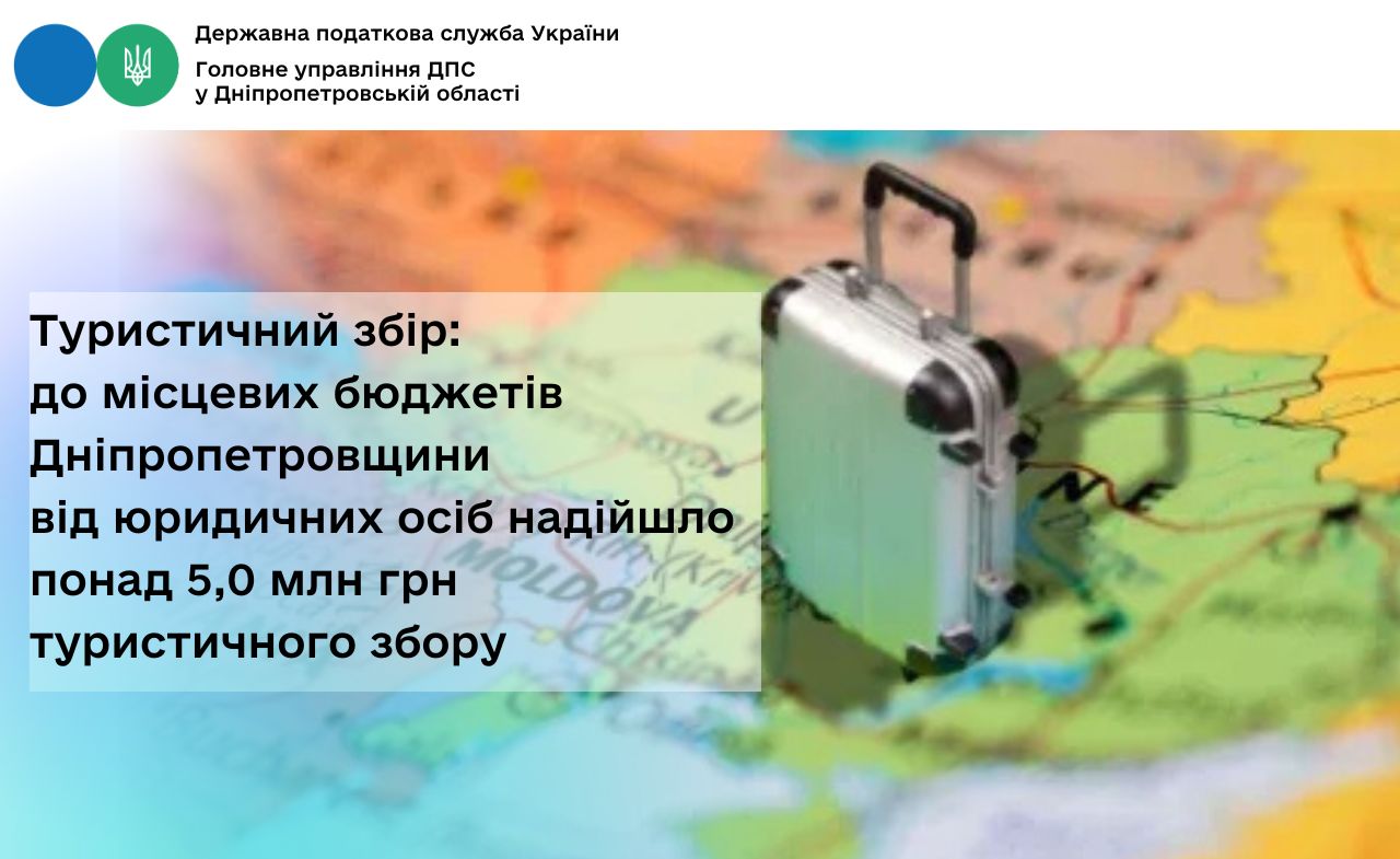 Туристичний збір: до місцевих бюджетів Дніпропетровщини від юридичних осіб надійшло понад 5,0 млн грн туристичного збору