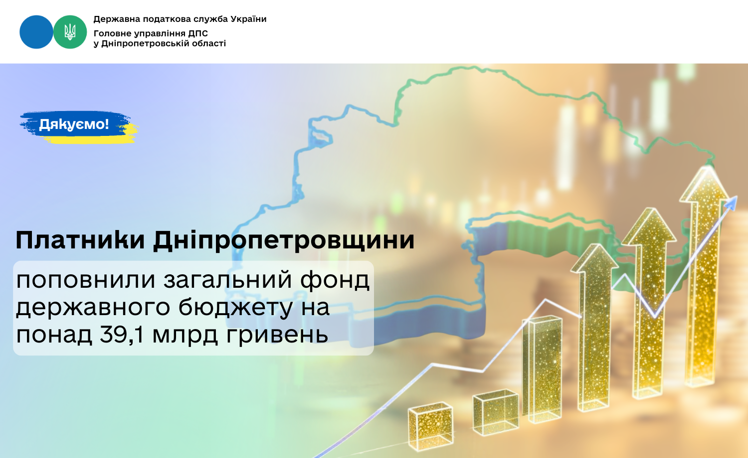 Протягом трьох кварталів поточного року платники Дніпропетровщини поповнили загальний фонд державного бюджету на понад 39,1 млрд гривень. Податків, зборів та платежів надійшло майже на 9,5 млрд грн, або на 32,1 відс., більше ніж у січні – вересні 2024 року. Про це повідомила начальник Головного управління ДПС у Дніпропетровській області Теодозія Чернецька.