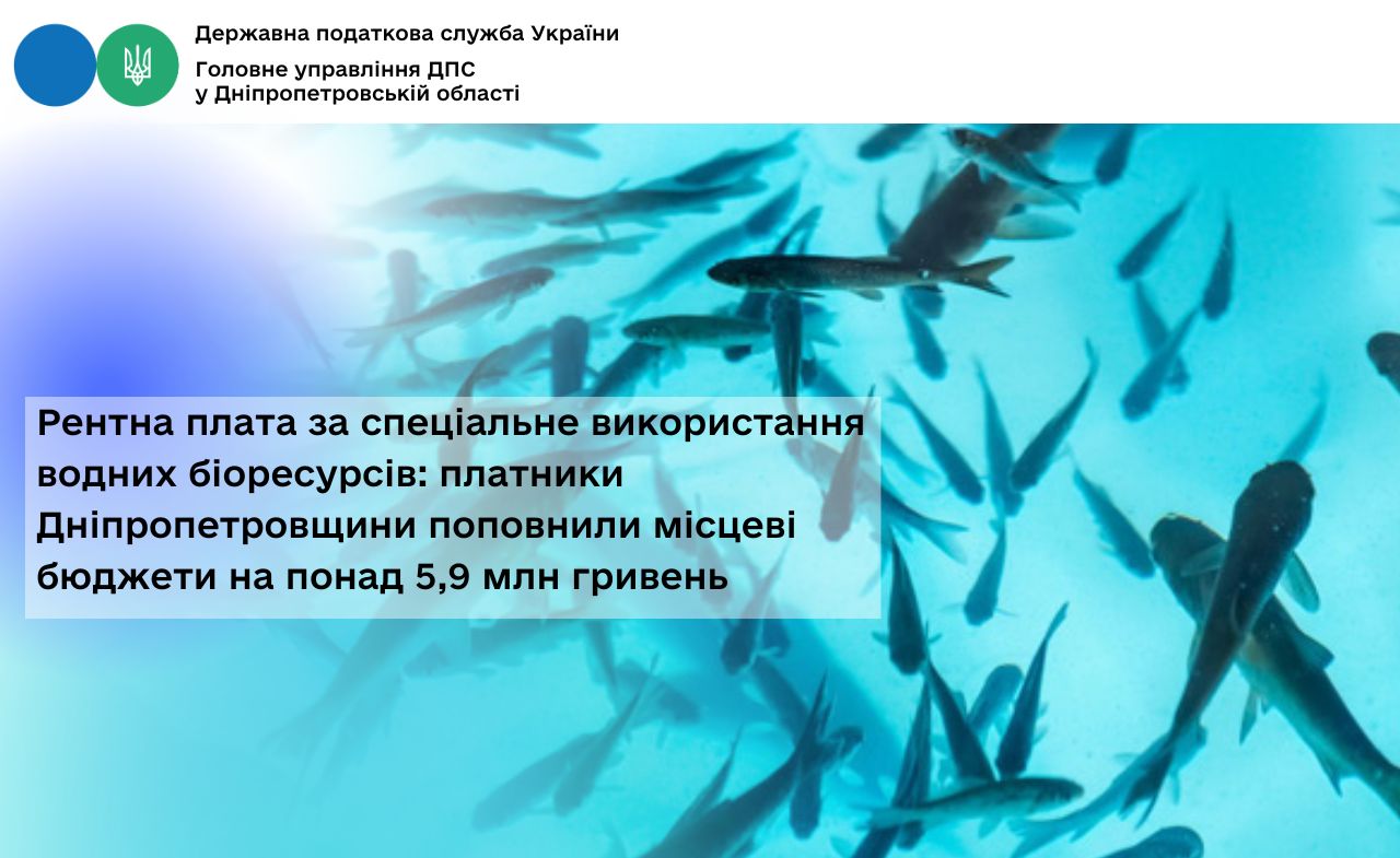 Рентна плата за спеціальне використання водних біоресурсів: платники Дніпропетровщини поповнили місцеві бюджети на понад 5,9 млн гривень