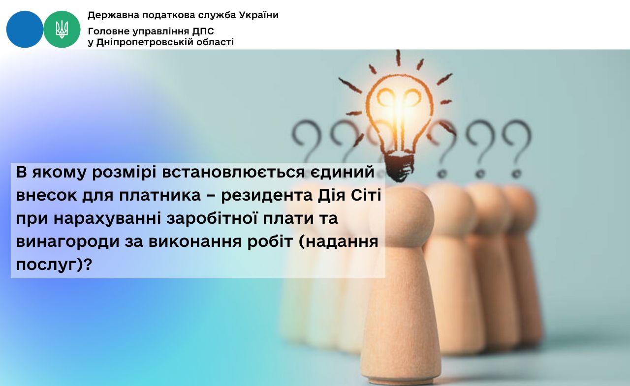 Головне управління ДПС у Дніпропетровській області нагадує, що для резидента Дія Сіті (крім резидента Дія Сіті, який одночасно має статус резидента Дефенс Сіті), який у календарному місяці відповідав вимогам, визначеним пунктами 2 та 3 частини першої, п. 10 частини другої ст. 5 Закону України «Про стимулювання розвитку цифрової економіки в Україні» (зі змінами та доповненнями) (далі – Закон № 1667), починаючи з календарного місяця, наступного за календарним місяцем, в якому платником набуто статус резидента Дія Сіті, єдиний внесок встановлюється у розмірі мінімального страхового внеску: