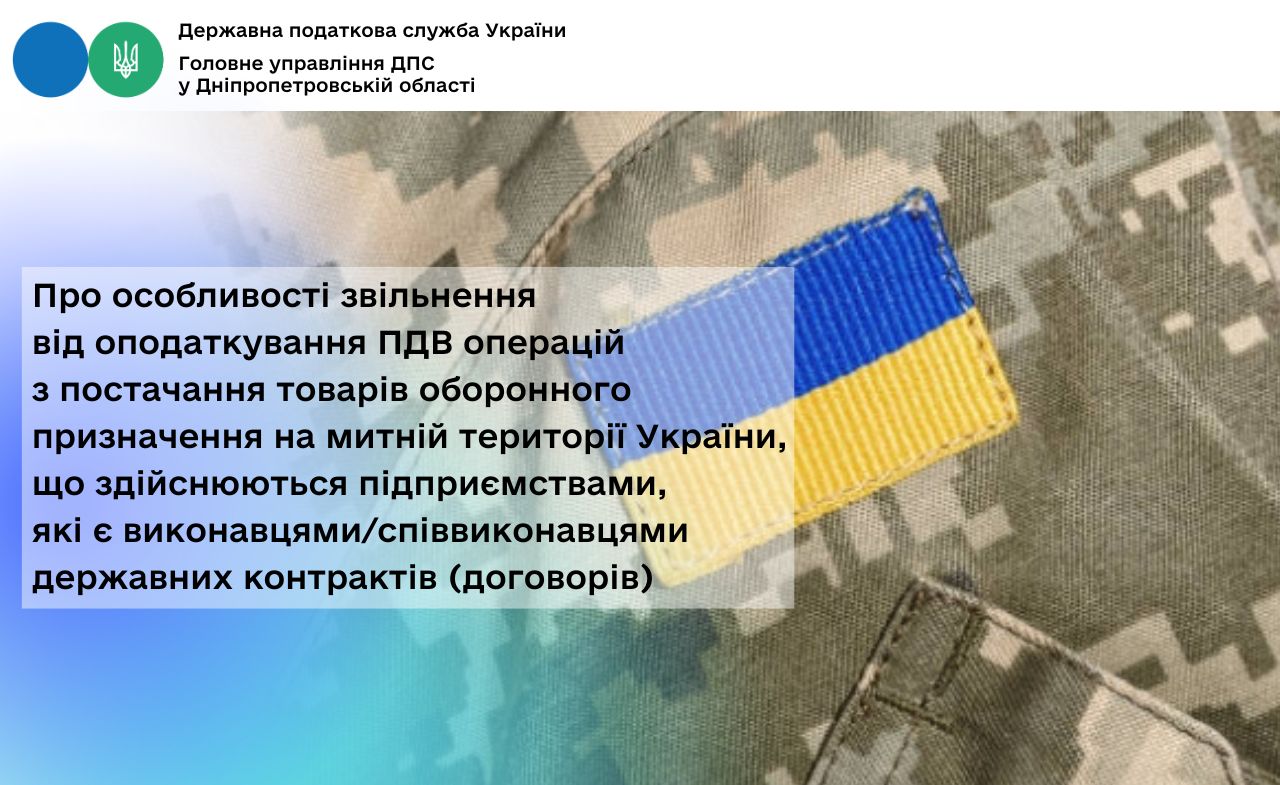 Про особливості звільнення від оподаткування ПДB операцій з постачання товарів оборонного призначення на митній території України, що здійснюються підприємствами, які є виконавцями/співвиконавцями державних контрактів (договорів)