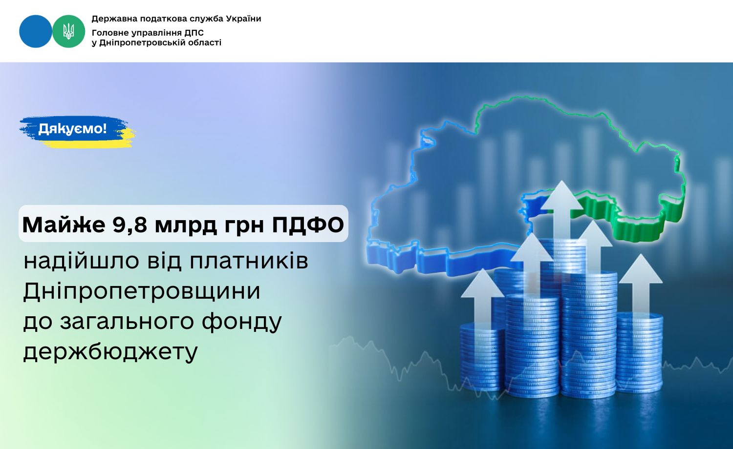 Протягом січня – жовтня 2025 року від платників Дніпропетровщини до загального фонду державного бюджету надійшло майже 9,8 млрд грн податку на доходи фізичних осіб (ПДФО). У порівнянні з січнем – жовтнем минулого року надходження збільшились на понад 1,3 млрд грн, або на 16,0 відсотків. Про це повідомила начальник Головного управління ДПС у Дніпропетровській Теодозія Чернецька.