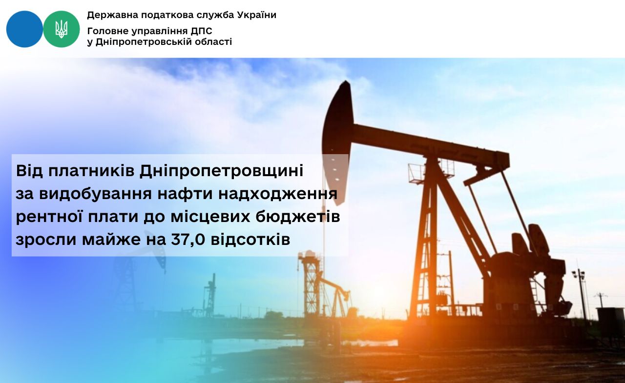 Від платників Дніпропетровщині за видобування нафти надходження рентної плати до місцевих бюджетів зросли майже на 37,0 відсотків