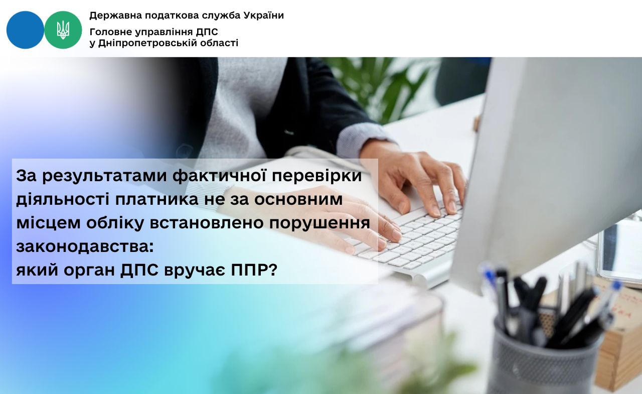 Таким чином, якщо встановлено порушення законодавства за результатами фактичної перевірки діяльності платника податків не за основним місцем обліку, то керівник (заступник керівника або уповноважена особа) територіального органу ДПС за основним місцем обліку такого платника податків забезпечує прийняття ППР, яке вручається платнику податків у порядку, визначеному ст. 42 ПКУ.