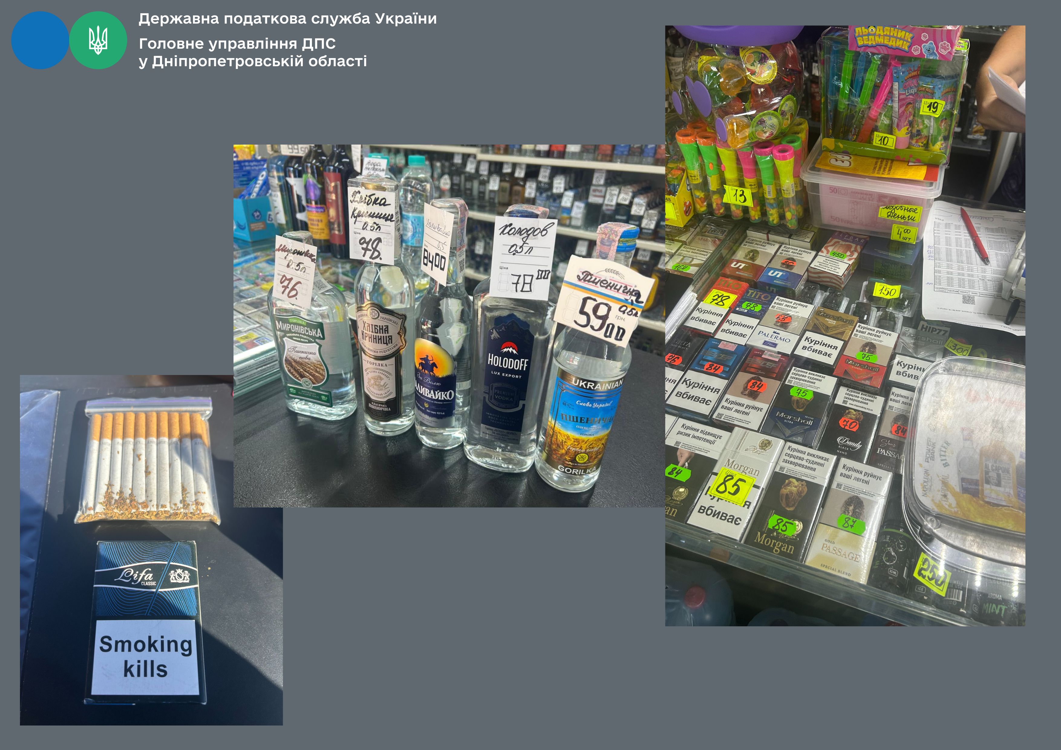 У ході перевірок мережі закладів (продаж алкогольно-тютюнових виробів з МАФів) встановлено: здійснення розрахункових операцій з продажу підакцизних товарів без застосування РРО/ПРРО; роздрібна торгівля алкогольними напоями та тютюновими виробами без наявності відповідних ліцензій та марок акцизного податку; використання праці найманих осіб без відповідного оформлення.