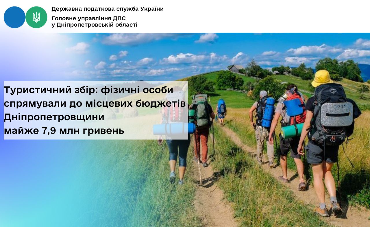 Упродовж десяти місяців фізичні особи – платники туристичного збору поповнили місцеві бюджети Дніпропетровської області майже на 7,9 млн гривень. Це на 312,2 тис. грн більше ніж у січні – жовтні 2024 року, темп росту – 104,1 відсотки.