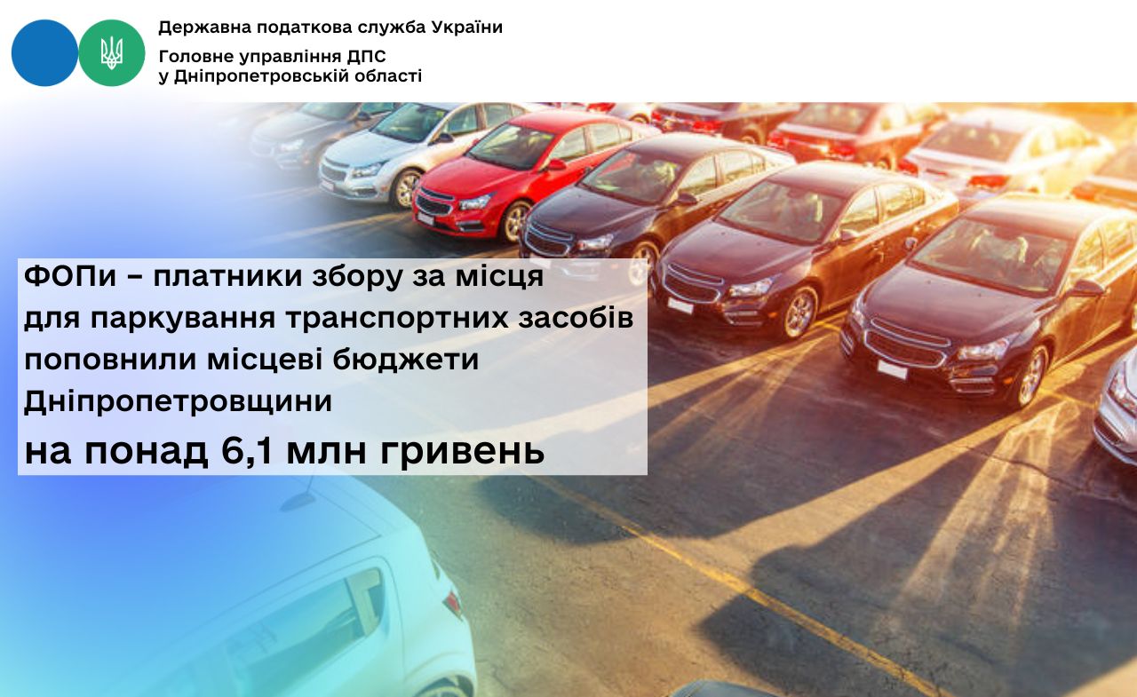 ФОПи – платники збору за місця для паркування транспортних засобів поповнили місцеві бюджети Дніпропетровщини на понад 6,1 млн гривень