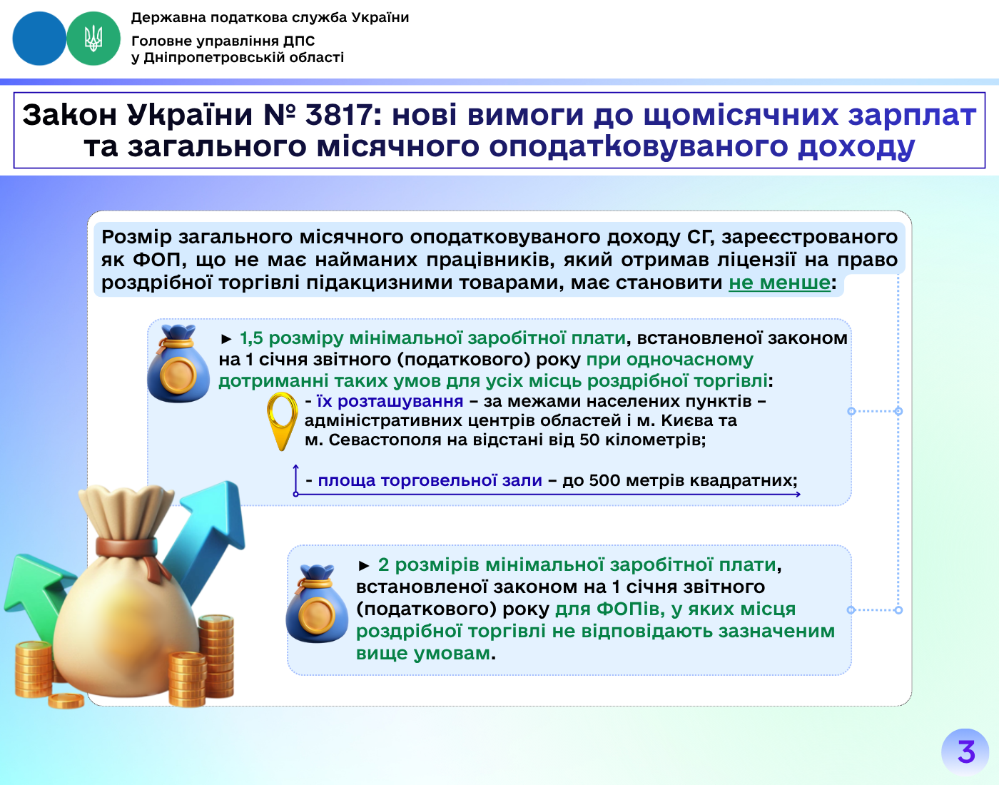 ► 1,5 розміру мінімальної заробітної плати, встановленої законом на 1 січня звітного (податкового) року при одночасному дотриманні таких умов для усіх місць роздрібної торгівлі:
