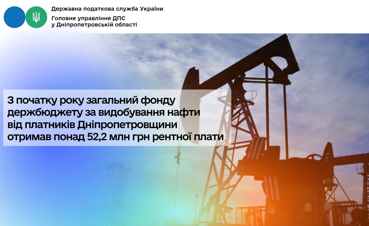 Впродовж десяти місяців поточного року платники Дніпропетровщини за видобування нафти спрямували до загального фонду державного бюджету понад 52,2 млн грн рентної плати. Це майже на 14,1 млн грн, або майже на 37,0 відс. більше ніж у січні – жовтні 2024 року.