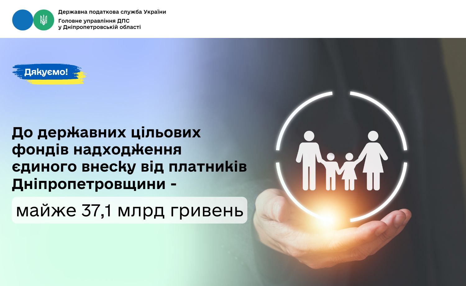 Протягом січня – жовтня 2025 року до державних цільових фондів платники Дніпропетровської області спрямували майже 37,1 млрд грн єдиного внеску на загальнообов’язкове державне соціальне страхування (єдиний внесок). У порівнянні з січнем – жовтнем минулого року це на понад 7,4 млрд грн, або на 25 відс., більше.
